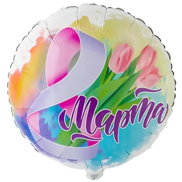 Шар фольгированный 18"/46см Круг 8 марта Нежные тюльпаны