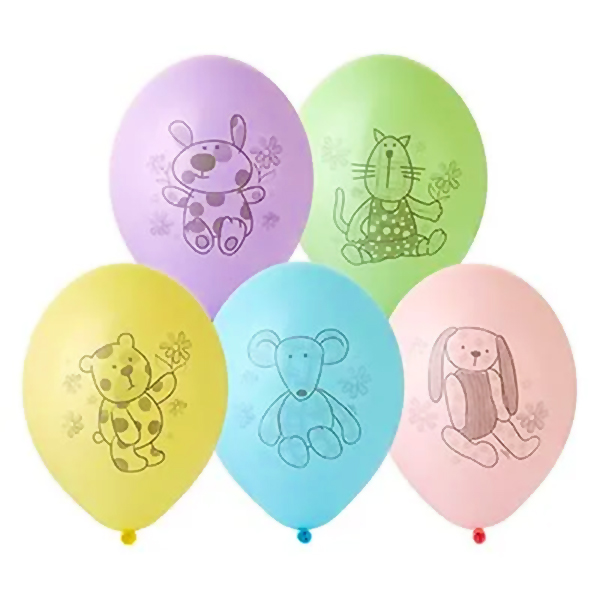 Набор шаров латексных 14"/36см Зверюшки-Игрушки, 5 цветов, 5 дизайнов, комплект 5шт
