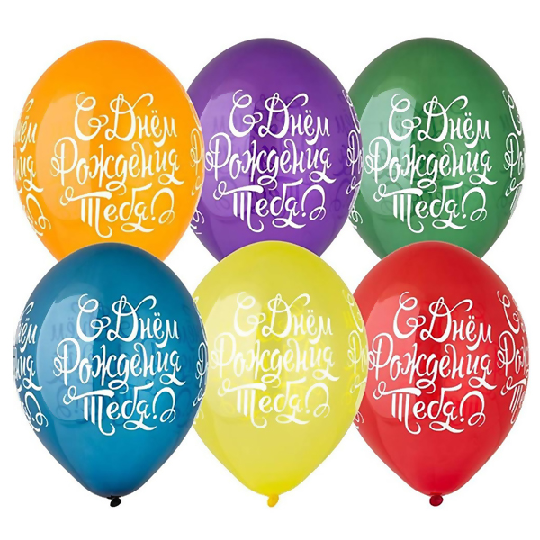 Шар латексный шелкография 14"/36см С Днем рождения тебя! Яркий, кристалл, ассорти из 6 цветов, 1 дизайн