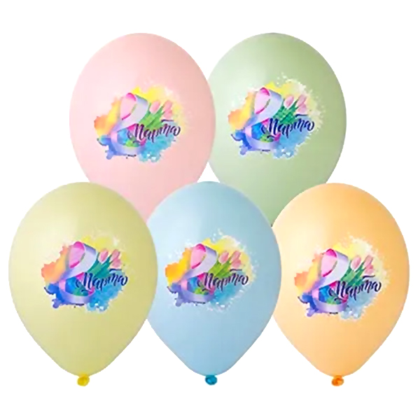 Шар латексный с рисунком 14"/36см 8 Марта Тюльпаны, ассорти из 5 цветов, 1 дизайн