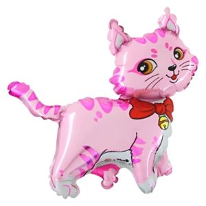 Шар фольгированный фигурный 13"/33см Кошечка с бантом розовая, крепится с помощью розетки на палочку (в комплект не входят)