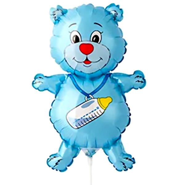 Шар фольгированный фигурный 14"/36см Медвежонок мальчик, крепится с помощью розетки на палочку (в комплект не входят)