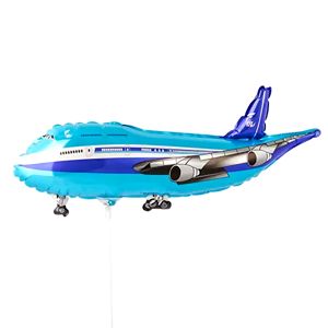 Шар фольгированный фигурный 17"/43см Самолет синий, крепится с помощью розетки на палочку (в комплект не входят)