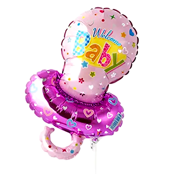 Шар фольгированный фигурный 14"/36см Соска розовая, крепится с помощью розетки на палочку (в комплект не входят)