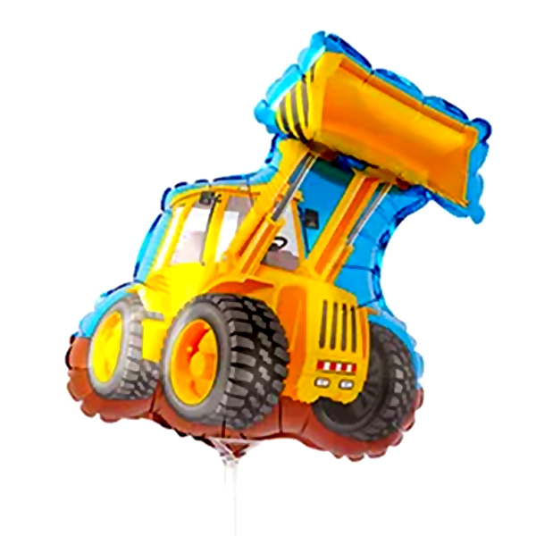 Шар фольгированный фигурный 14"/36см Экскаватор, крепится с помощью розетки на палочку (в комплект не входят)