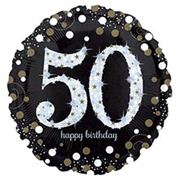 Шар фольгированный 18"/46см Круг HB Sparkling Birthday 50 gold
