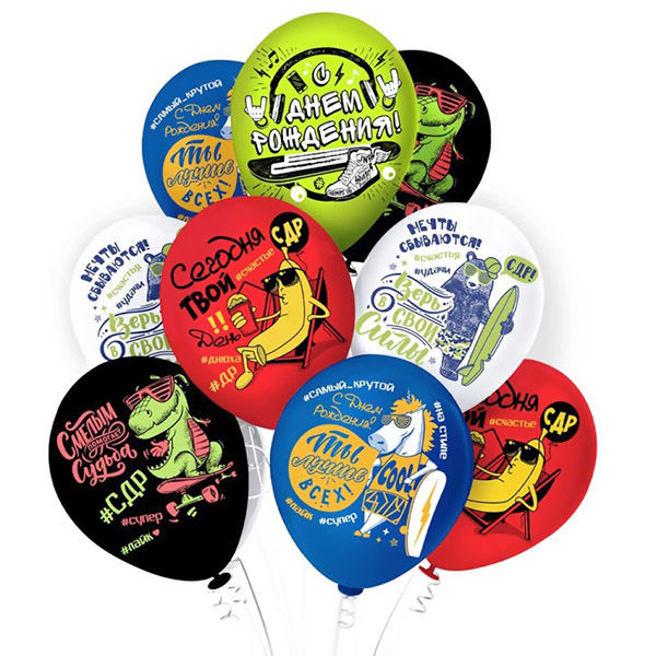 Воздушные шарики для самой эпичной вечеринки! Яркий и крутой день рождения! Твой день! Рисунок и надписи нанесены с одной стороны. Размер шаров в надуве 30см, продаются ненадутыми. Шары подходят как для надува воздухом при помощи ручного насоса или компрессора, так и для заполнения гелием.