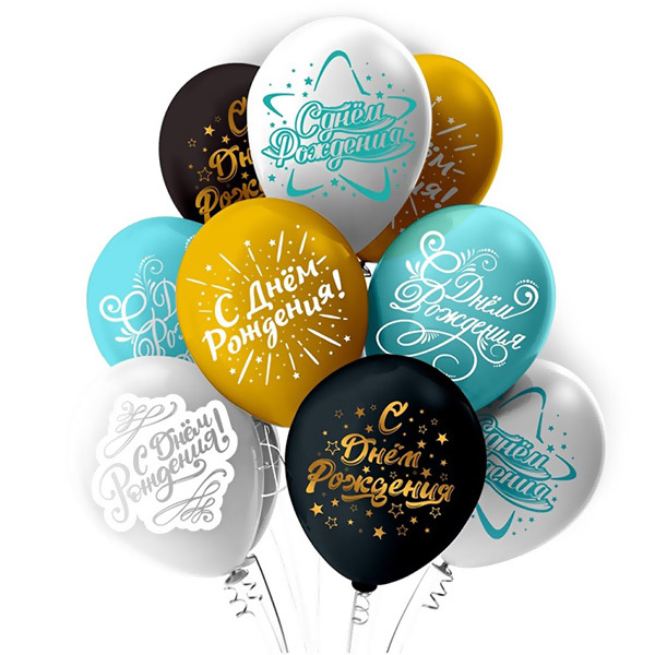 Шар латексный с рисунком 12"/30см С Днем Рождения Звездочки, ассорти из 4 цветов, 5 дизайнов