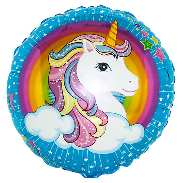 Шар фольгированный 18"/46см Круг Единорог радужный