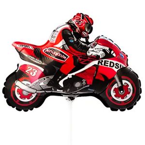 Шар фольгированный фигурный 12"/30см Мотоциклист красный, крепится с помощью розетки на палочку (в комплект не входят)