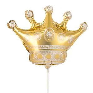 Шар фольгированный фигурный 15"/38см Корона золотая на палочке, крепится с помощью розетки на палочку