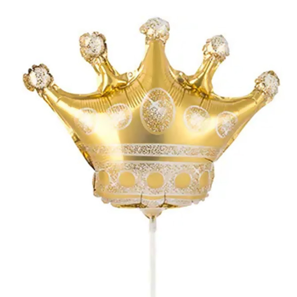 Объемная мини-фигура в форме короны. Шар снабжен самозакрывающимся клапаном, не требует запайки. Для надува рекомендуется использовать воздух. Шар можно разместить на палочке с использованием розетки (в комплект не входят). Шар может быть использован в качестве декора, а также как составная часть букета.