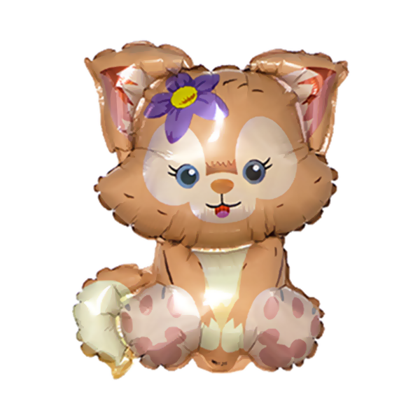 Шар фольгированный фигурный 16"/40см Котенок с цветком на палочке, крепится с помощью розетки на палочку