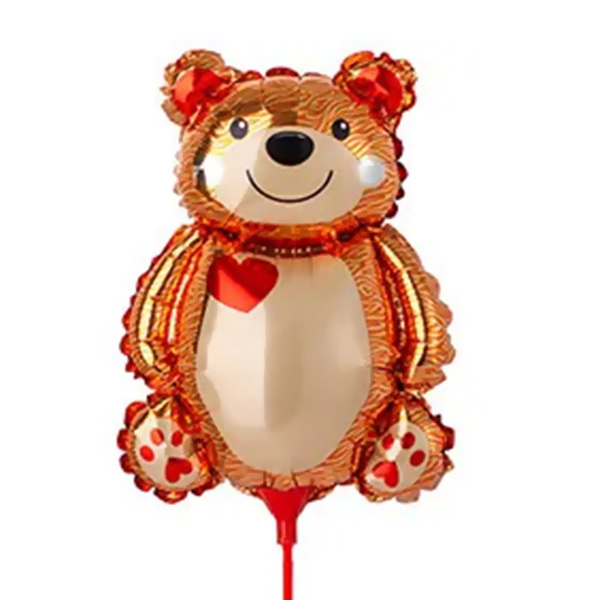 Шар фольгированный фигурный 12"/30см Мишка с сердцем на палочке, крепится с помощью розетки на палочку