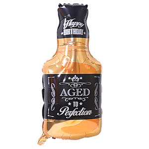 Большой объемный фольгированный шар высотой 74 см в форме бутылки виски с надписями на английском языке "Happy Birthday" (С Днем Рождения) и "Aged to perfection" (Выдержанный до совершенства). При надувании рекомендуется использовать гелий. Имеет встроенный клапан -что упрощает надувание. Поставляется в красочной упаковке с цветным изображением шара, благодаря чему можно выставлять товар в сдутом виде. Тонкая миларовая (фольга на полиэтиленовой основе) пленка позволяет шарам не сдуваться до 7 дней.