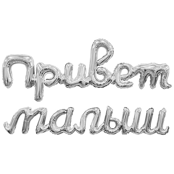 Фольгированный шар-фраза «Привет малыш» в серебряном цвете. Идеальная декорация для самостоятельного украшения комнаты к выписке малыша. Набор состоит их двух шаров-слов, каждое из которых имеет самозакрывающийся клапан и надувается отдельно. Прикрепить фразу к стене можно при помощи входящих в комплект клевых точек.