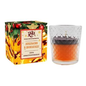 Свеча ароматизированная в стакане Новогодняя " РСМ " Апельсин в Шоколаде, 130*78,5мм, время горения 30часов, гланцевая картонная коробка