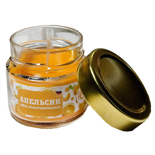Свеча ароматизированная в банке " РСМ " Апельсин, 60*60мм, время горения 14часов, с металлической крышкой