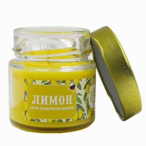 Свеча ароматизированная в банке " РСМ " Лимон, 60*60мм, время горения 14часов, с металлической крышкой
