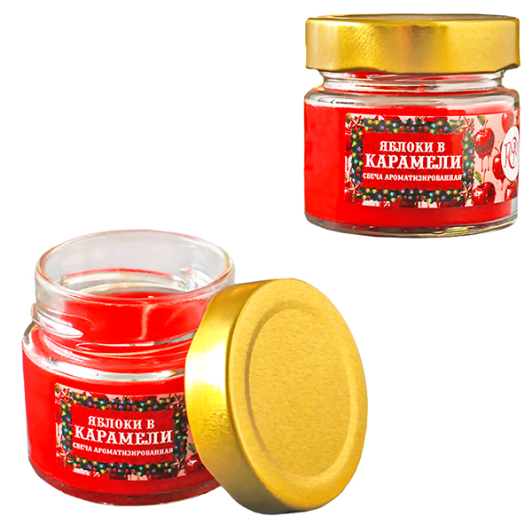 Свеча ароматизированная в банке Новогодняя " РСМ " Яблоки в карамели, 60*60мм, время горения 14часов, с металлической крышкой