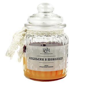 Свеча ароматизированная в банке Новогодняя " РСМ " Апельсин в шоколаде, 75*120мм, время горения 45часов, со стеклянной крышкой
