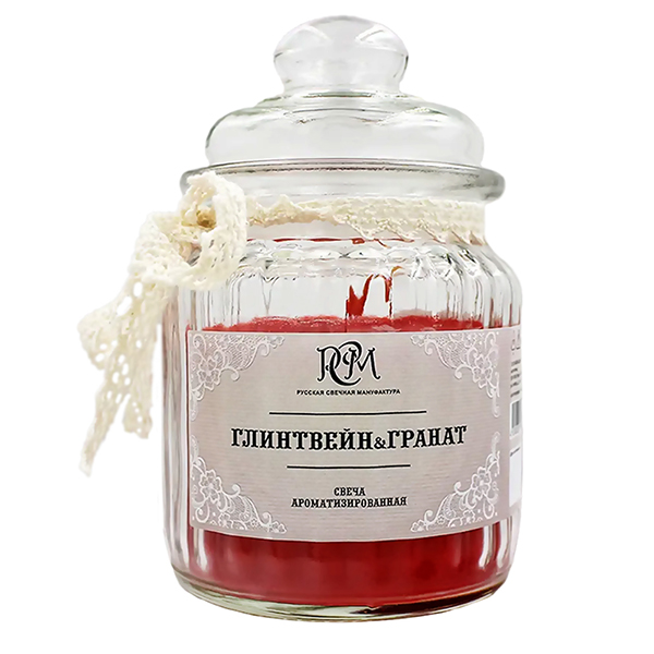 Свеча ароматизированная в банке Новогодняя " РСМ " Глинтвейн и гранат, 75*120мм, время горения 45часов, со стеклянной крышкой
