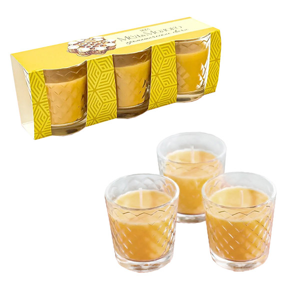 Набор ароматизированных свечей в стакане " РСМ " Молоко-мед, 55*40мм, время горения 10часов, 3шт, в картонной упаковке