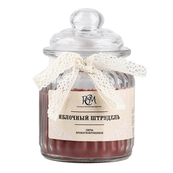 Свеча ароматизированная в банке " РСМ " Яблочный штрудель, 75*120мм, время горения 45часов, со стеклянной крышкой