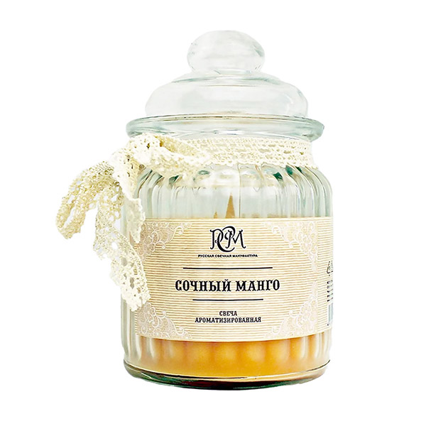 Свеча ароматизированная в банке " РСМ " Сочный манго, 75*120мм, время горения 45часов, со стеклянной крышкой