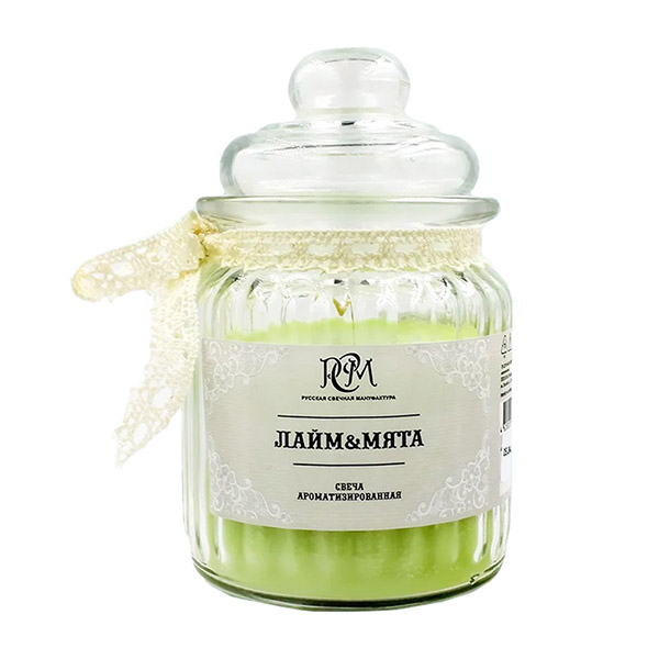 Свеча ароматизированная в банке " РСМ " Лайм, мята, 75*120мм, время горения 45часов, со стеклянной крышкой