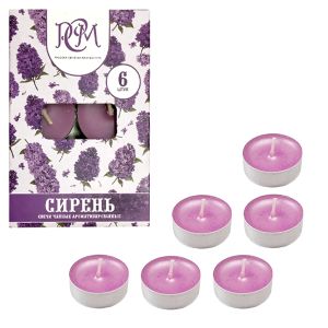 Свеча чайная ароматизированная " РСМ " 6шт Сирень, 39*12,5мм, время горения 3-4часа, картонная упаковка
