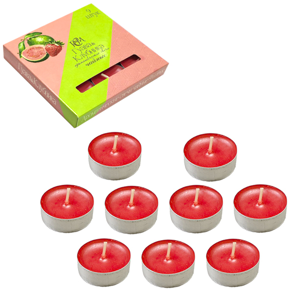 Свеча чайная ароматизированная " РСМ " 9шт Гуава клубника, 39*12,5мм, время горения 3-4часа, картонная упаковка